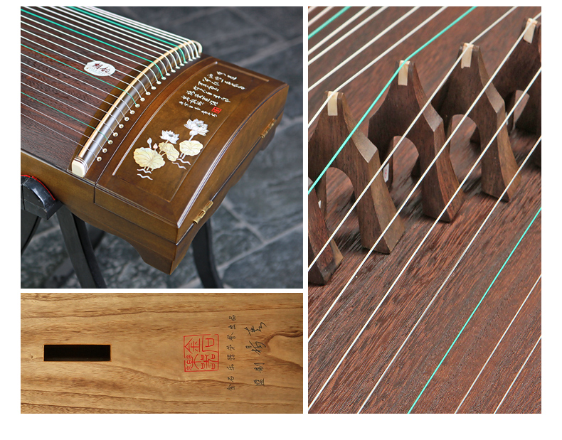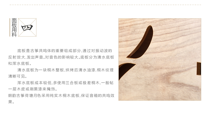 朗韻古箏荷塘月色采用純實木桐木底板保證音箱的共鳴效果。